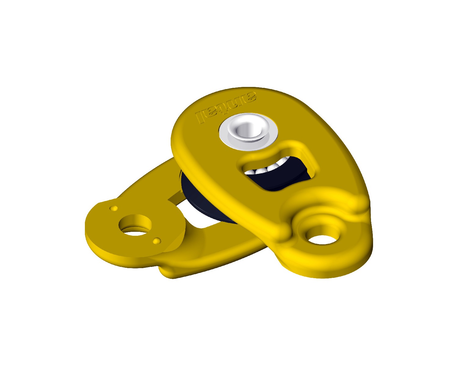 Mini poulie ouvrante à sangler réa Ø32mm jaune