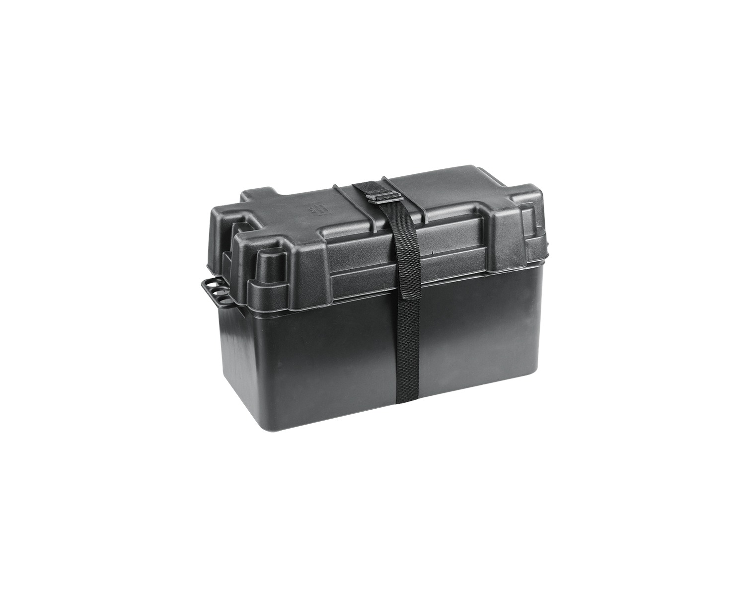 Bac à batterie en plastique avec couvercle et sangle de fixation