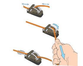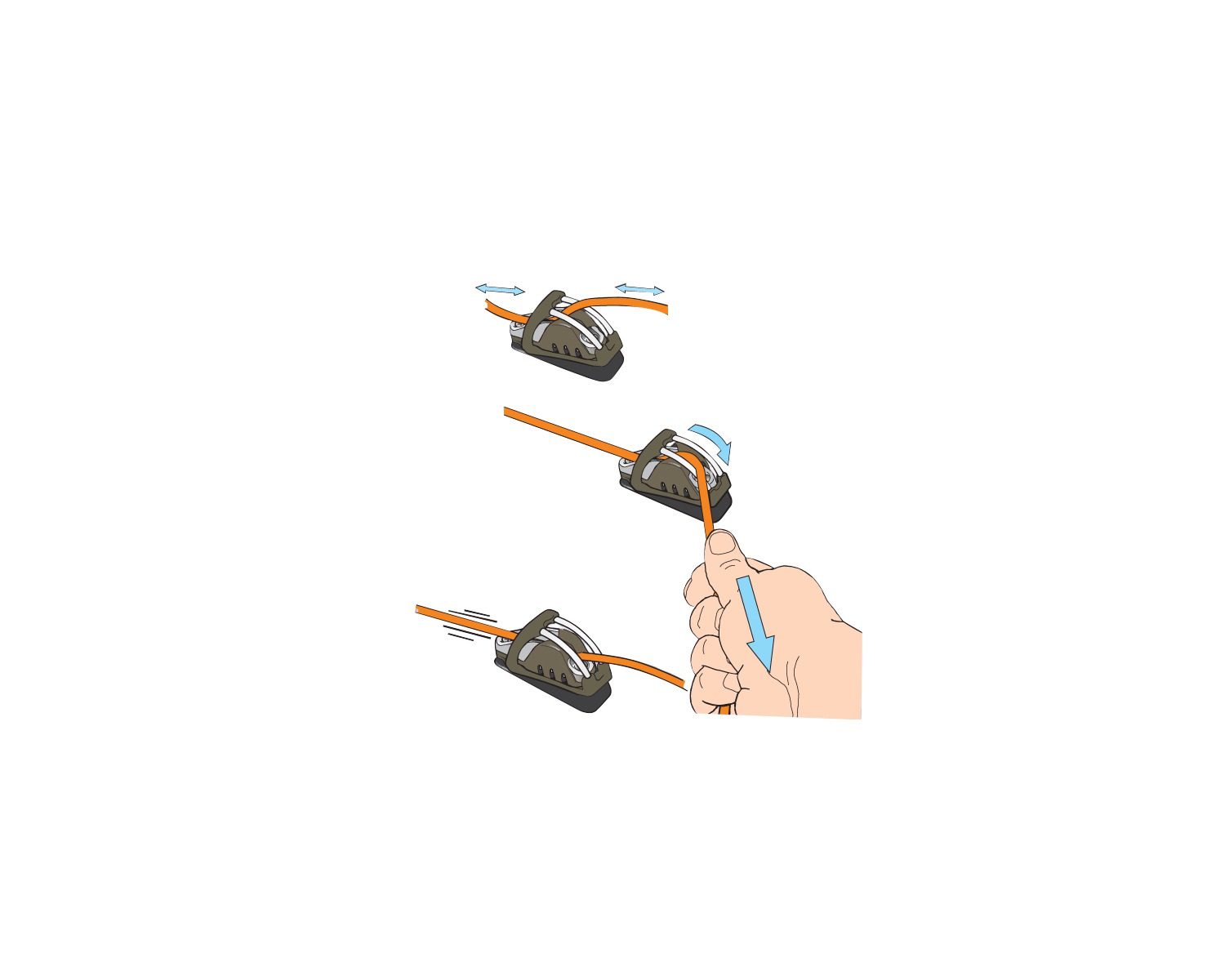 Le guide cage permet de bloquer et débloquer les cordages avec un angle de traction jusqu'à 70°. Il sert également en usage normal de sécurité en empêchant les déblocages intempestifs. Il permet une meilleure circulation du cordage.