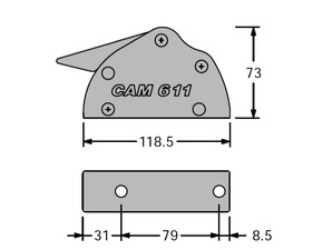 Le bloqueur Antal CAM611 s'adapte en un seul modèle aux cordages de 6 à 11 mm, disponible en version simple, double, triple et horizontale. Structure en résine anti-UV avec renforts en acier inox, embase en aluminium extrudé, mâchoire en bronze anti usure, filoirs en acier inox. Le bloqueur est entièrement démontable pour en faciliter l'entretien. L'étarquage se fait sans ouvrir le bloqueur pour un réglage plus précis, l'ouverture est garantie même sous les plus fortes charges grâce au mécanisme exclusif ANTAL