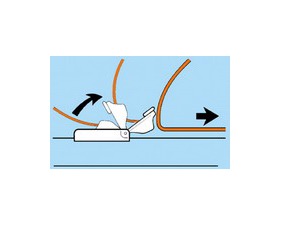 Taquet à déverrouillage automatique Clamcleat CL257. Pour cordage 4-6 mm. Le taquet bloque solidement les drosses de safran, et se libère rapidement si le safran ou la dérive heurte le fond ou un obstacle.