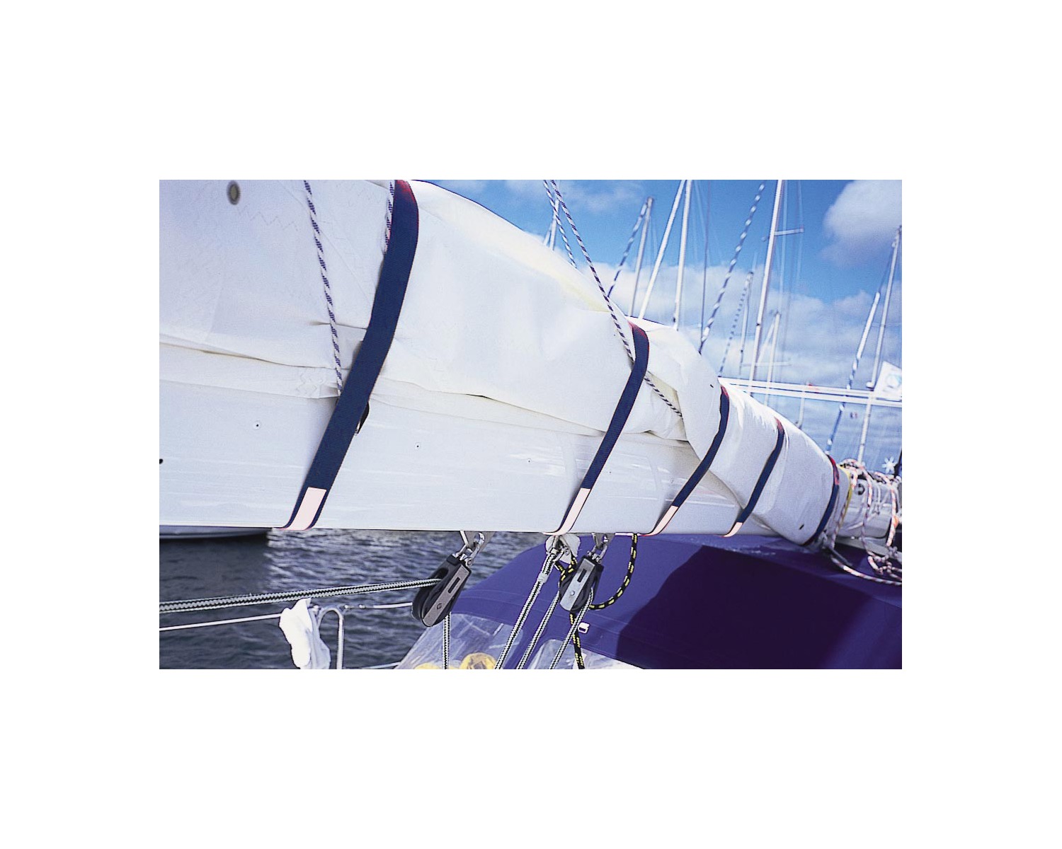 Sangles auto-agrippantes utilisées pour ferler les voiles sur la bôme ou sur une filière.