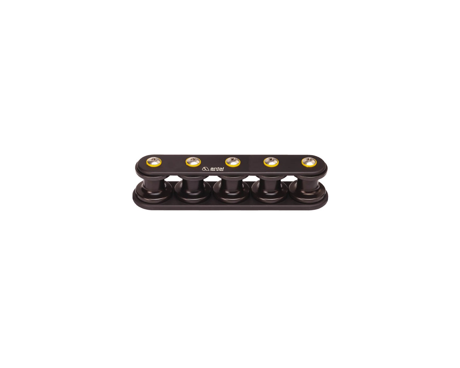 La boite à réa V-CAM Antal permet aux manoeuvres d'être guidées en sortie des bloqueurs vers différents winchs. Les réas sont en résine avec roulements latéraux à billes captives et le carter en aluminium anodisé dur noir, livré avec la visserie.