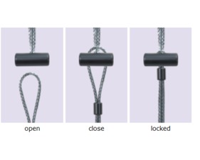 C'est une version simple et originale du loop avec fermeture en T qui permet un ancrage facile tout en évitant toute ouverture accidentelle.
