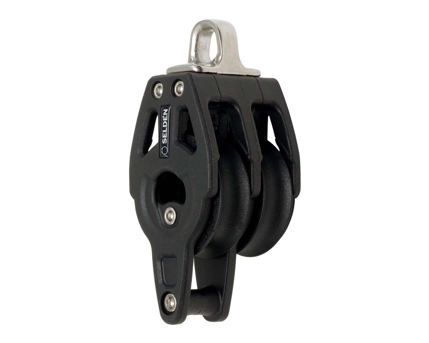 Les poulies à billes Selden possèdent des billes en inox et un réa renforcé en fibre de verre pour une meilleure résistance même sous forte charge dynamique.