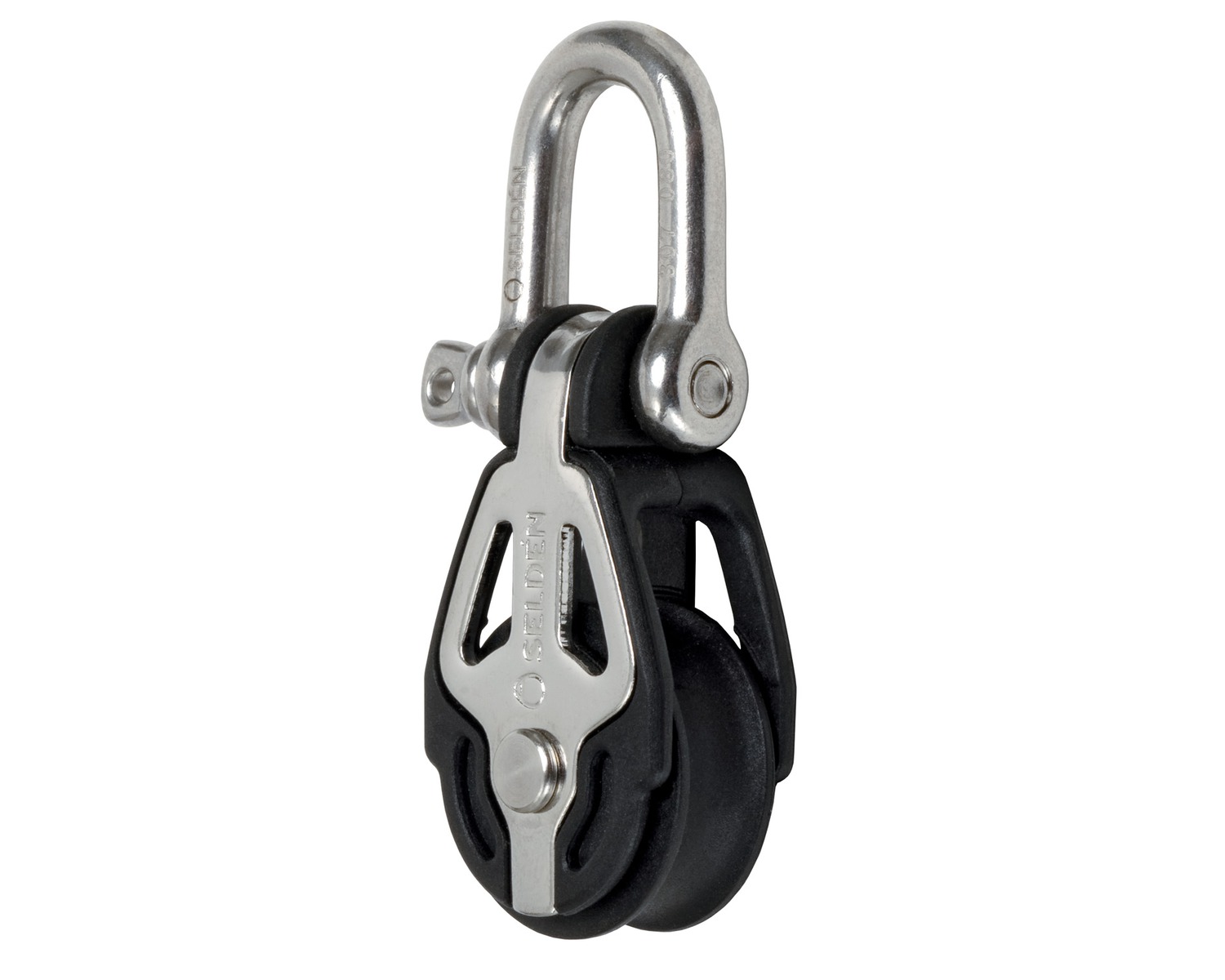 Les poulies à billes Selden possèdent des billes en inox et un réa renforcé en fibre de verre pour une meilleure résistance même sous forte charge dynamique.