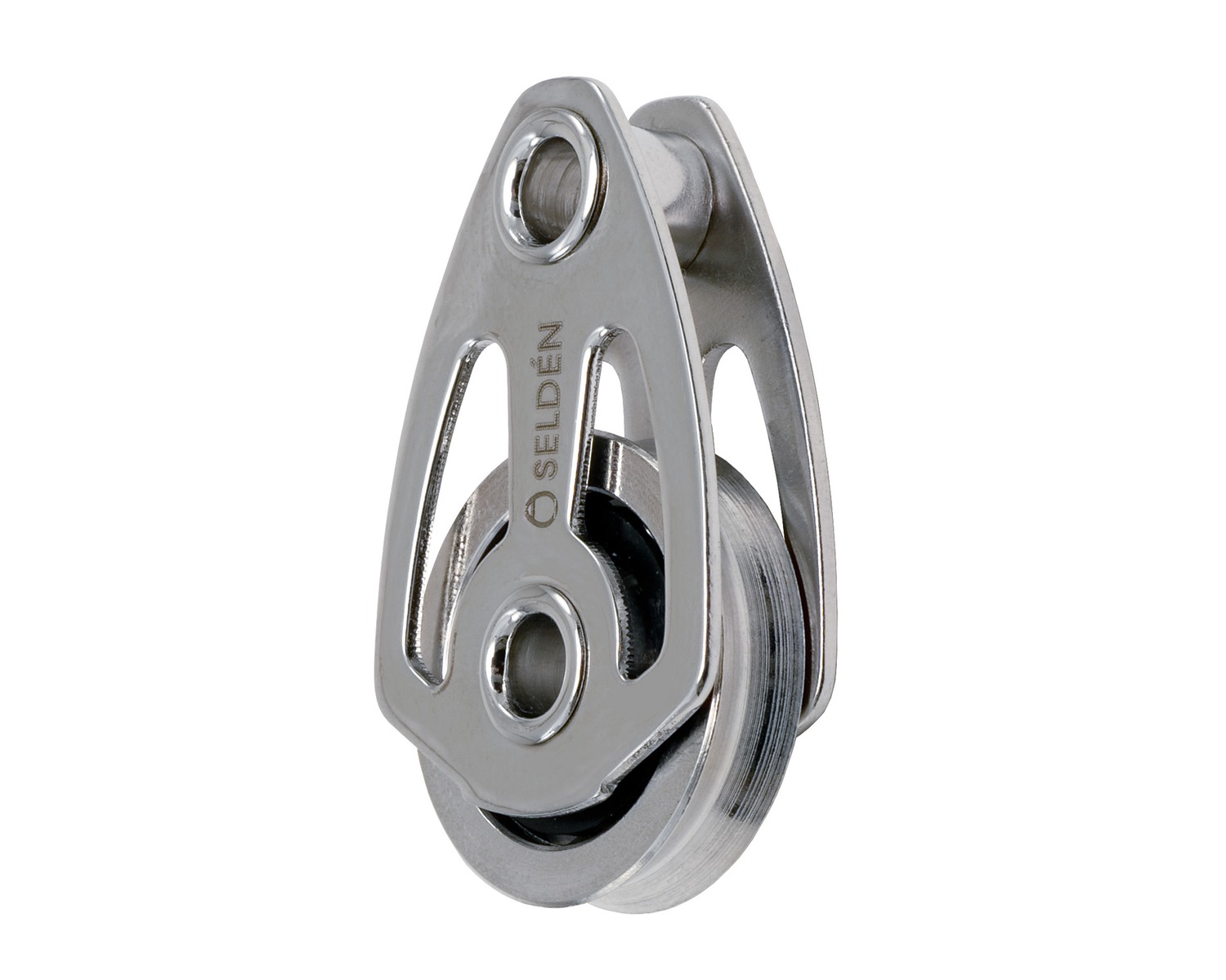 Les poulies à billes Selden possèdent des billes en inox et un réa renforcé en fibre de verre pour une meilleure résistance même sous forte charge dynamique.