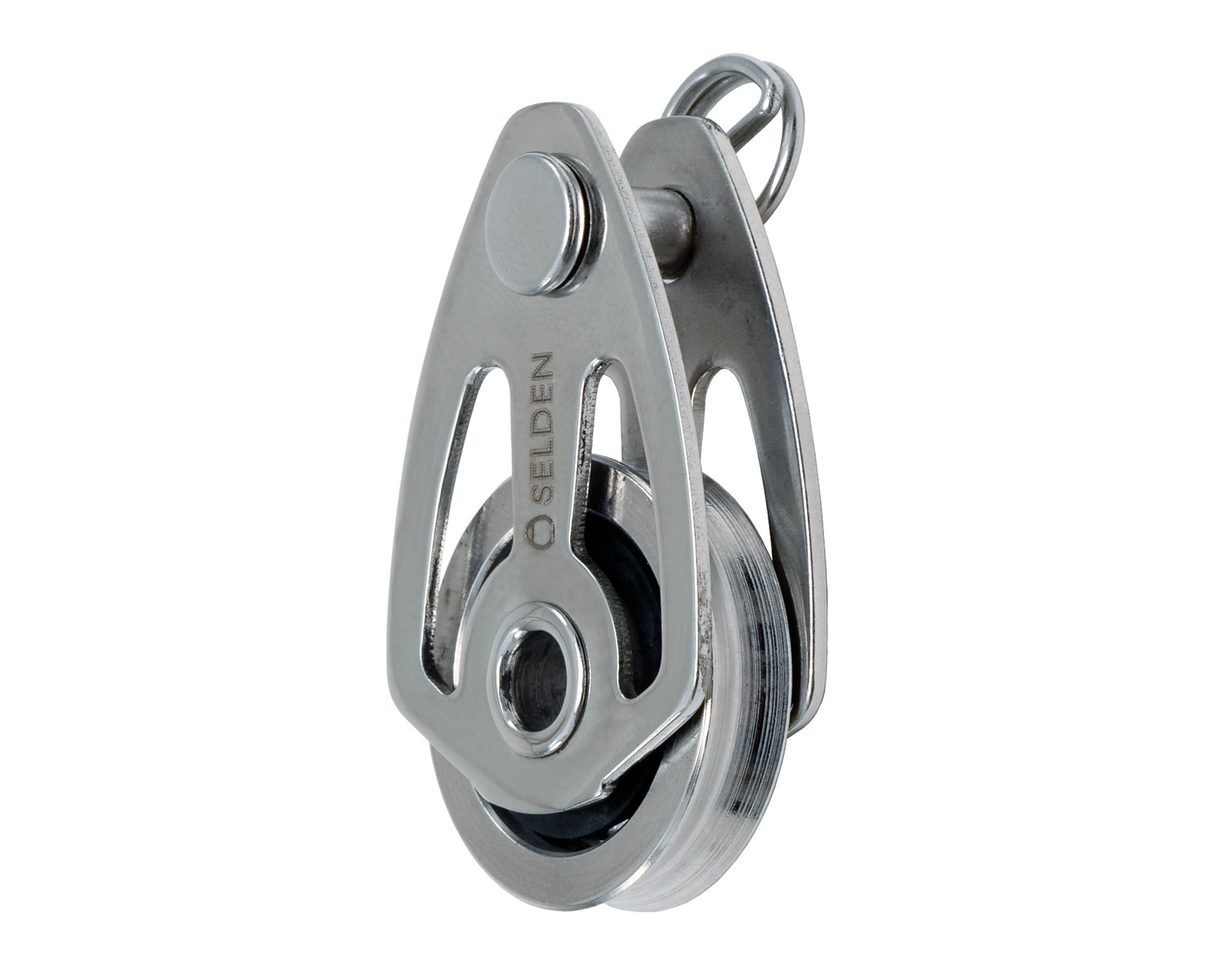 Les poulies à billes Selden possèdent des billes en inox et un réa renforcé en fibre de verre pour une meilleure résistance même sous forte charge dynamique.