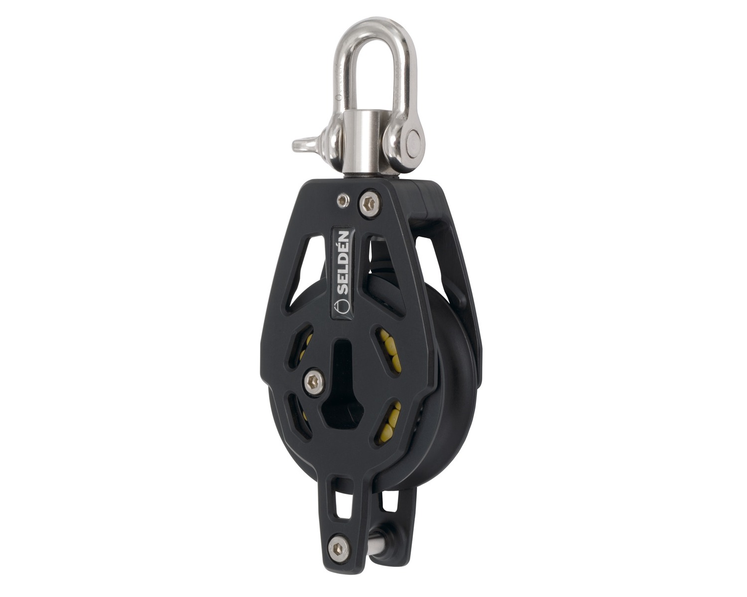 La poulie Seldén à rouleaux a été conçue pour les applications dynamiques à contraintes élevées telles que les palans de pataras en cascade, les écoutes, les palans de spinnaker et les drisses. Ces poulies se distinguent par leur faible coefficient de friction et le poids réduit. Joues usinées en aluminium anodisé noir et rouleaux en Torlon®.