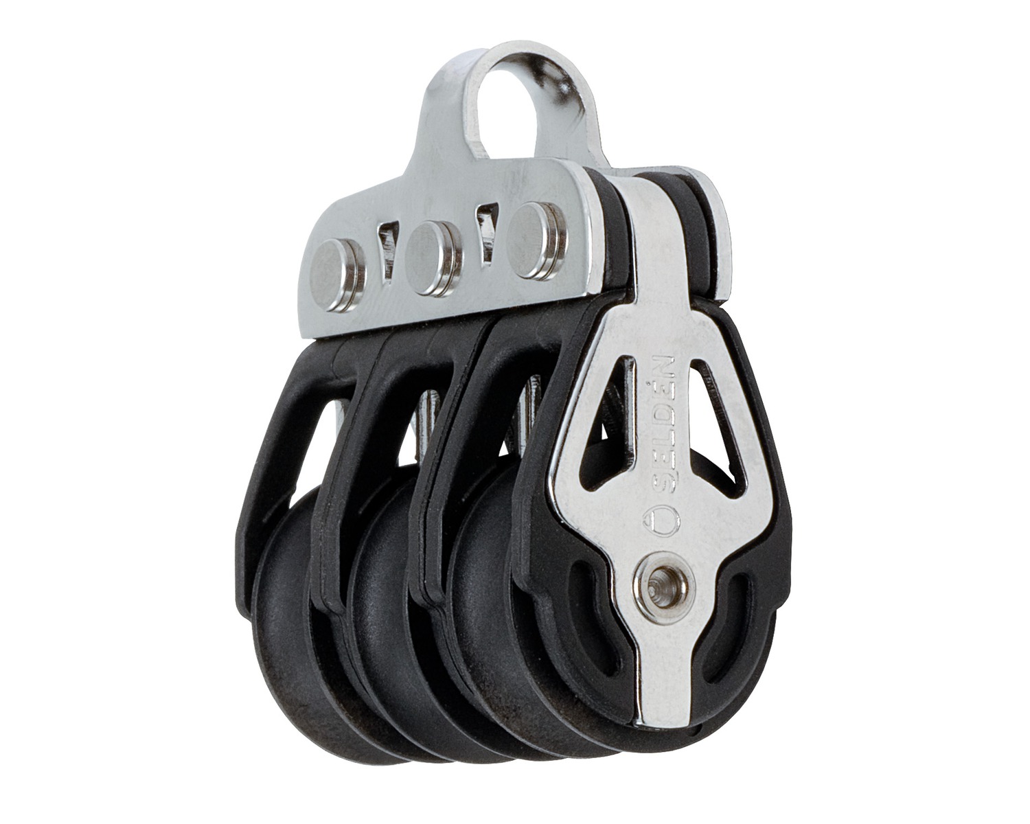 Les poulies à billes Selden possèdent des billes en inox et un réa renforcé en fibre de verre pour une meilleure résistance même sous forte charge dynamique.