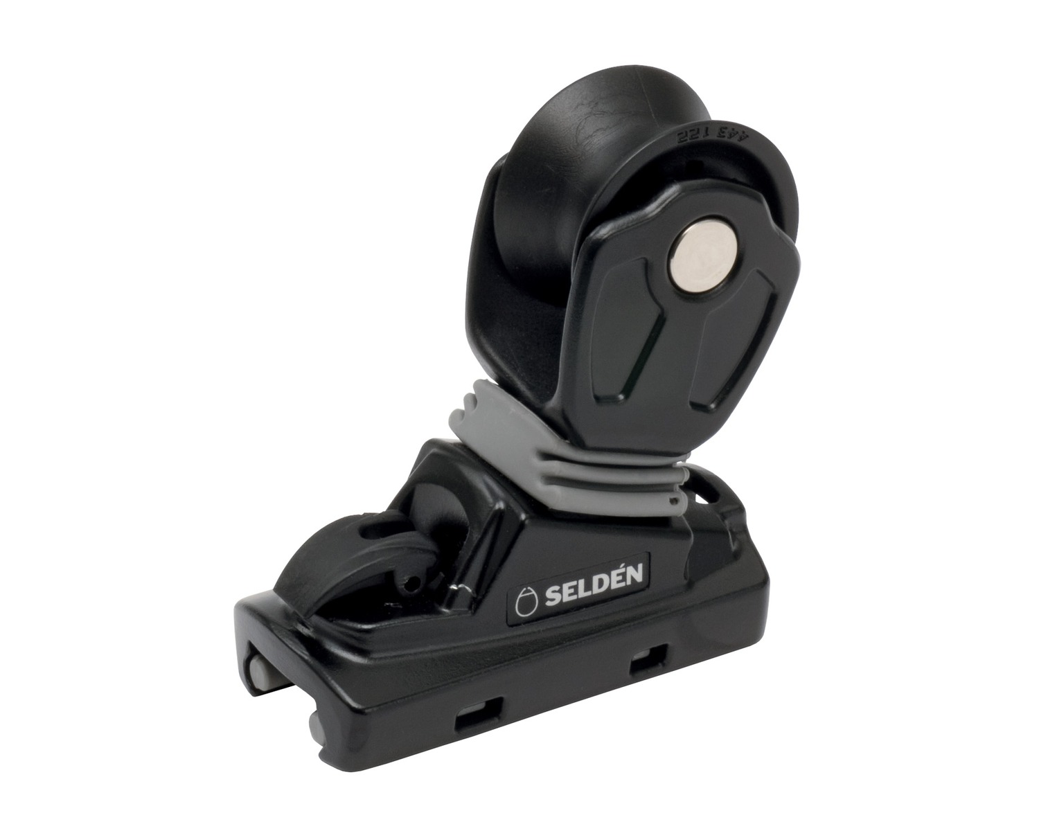 Chariot de génois, blocage à piston pour rail Selden System 22.Le chariot d'écoute de génois est en aluminium laqué noir et glisse sur des patins intégrés.