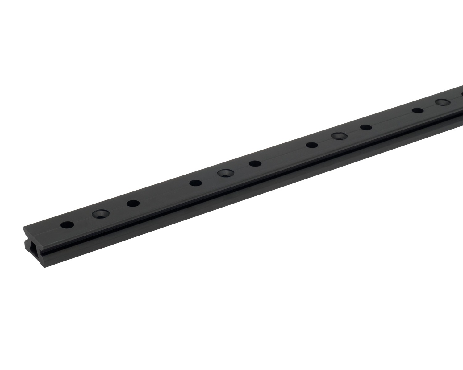 Le système de rail « Pins Stop » ou le piston à ressort bloque le chariot sur le rail approprié, à l'emplacement désiré. L'ensemble rail de génois Selden est livré complet et contient : le rail, le chariot (alu laqué noir circulant sur patins), les butées avant et arrière.