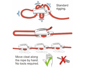 Coinceur Clamcleat 211 Mk2 sur base aéro permettant l'utilisation sans fixation.