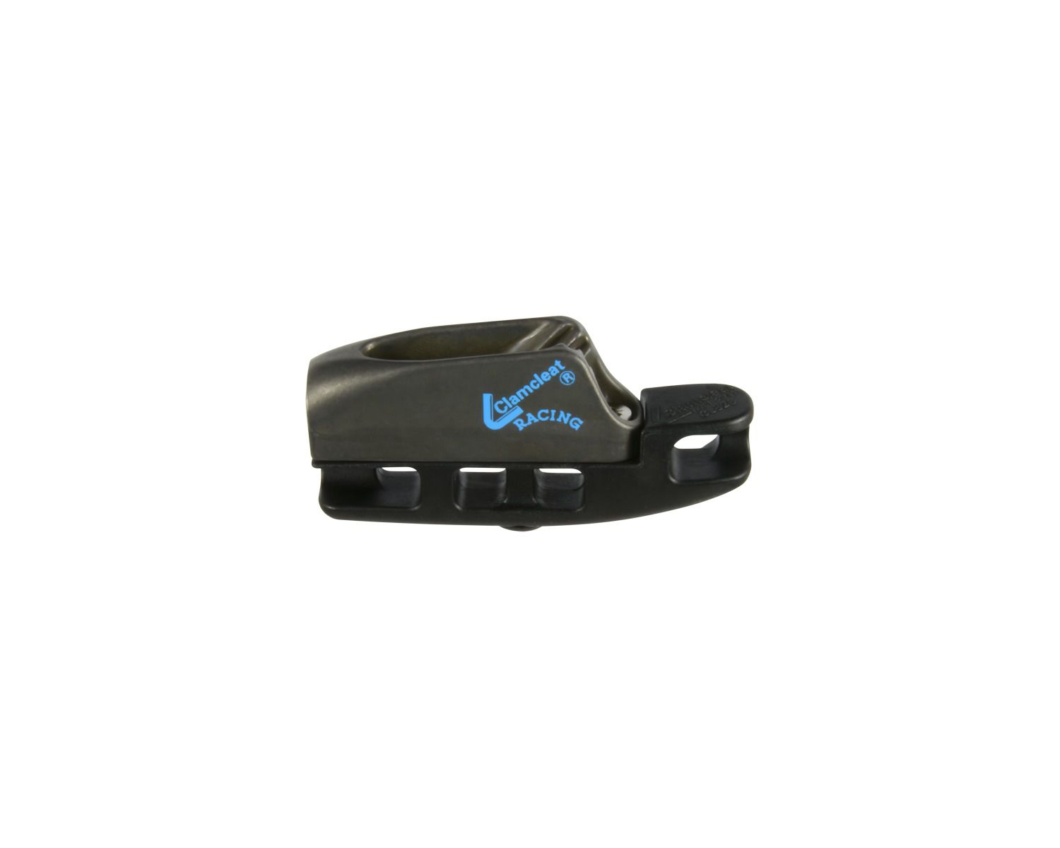 Coinceur Clamcleat 211 Mk2 anodisé noir sur base aéro permettant l'utilisation sans fixation.
