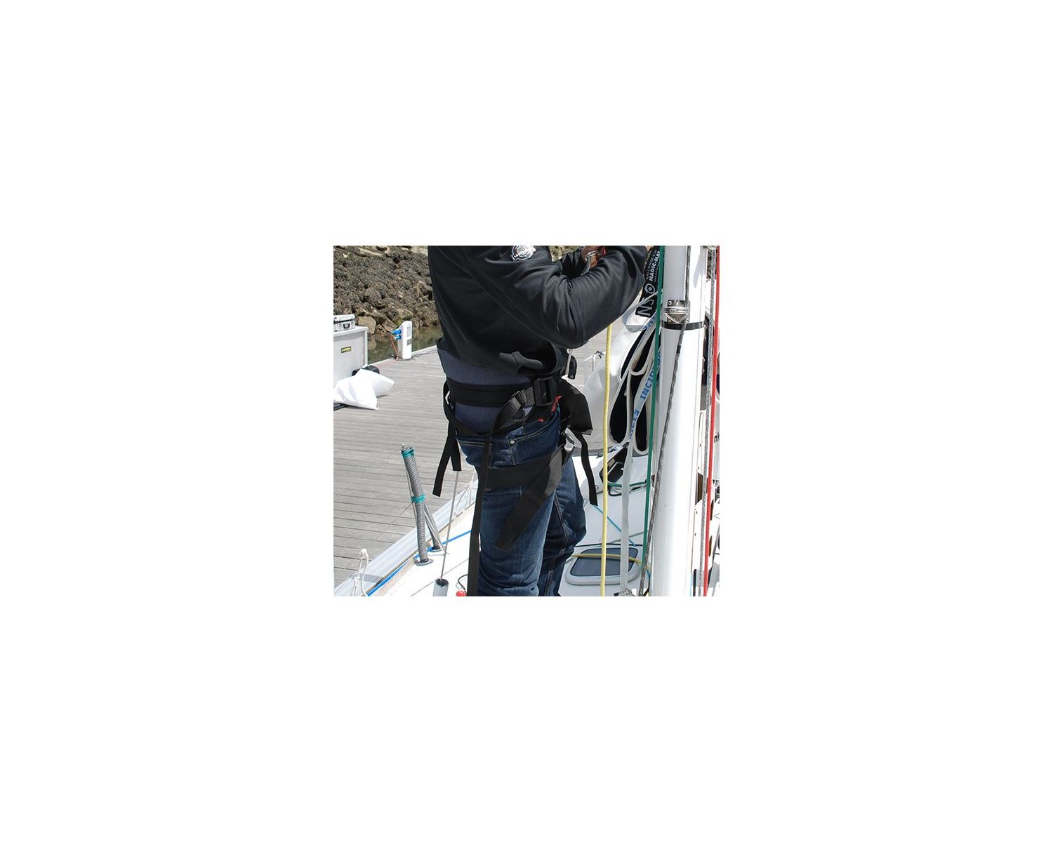 Associé au système anti-chute Réf 0503049, le harnais de travail garantit une sécurité absolue et un grand confort d'utilisation aussi bien dans les étapes de montée et de descente du mât que dans les périodes de travail en tête de mât.