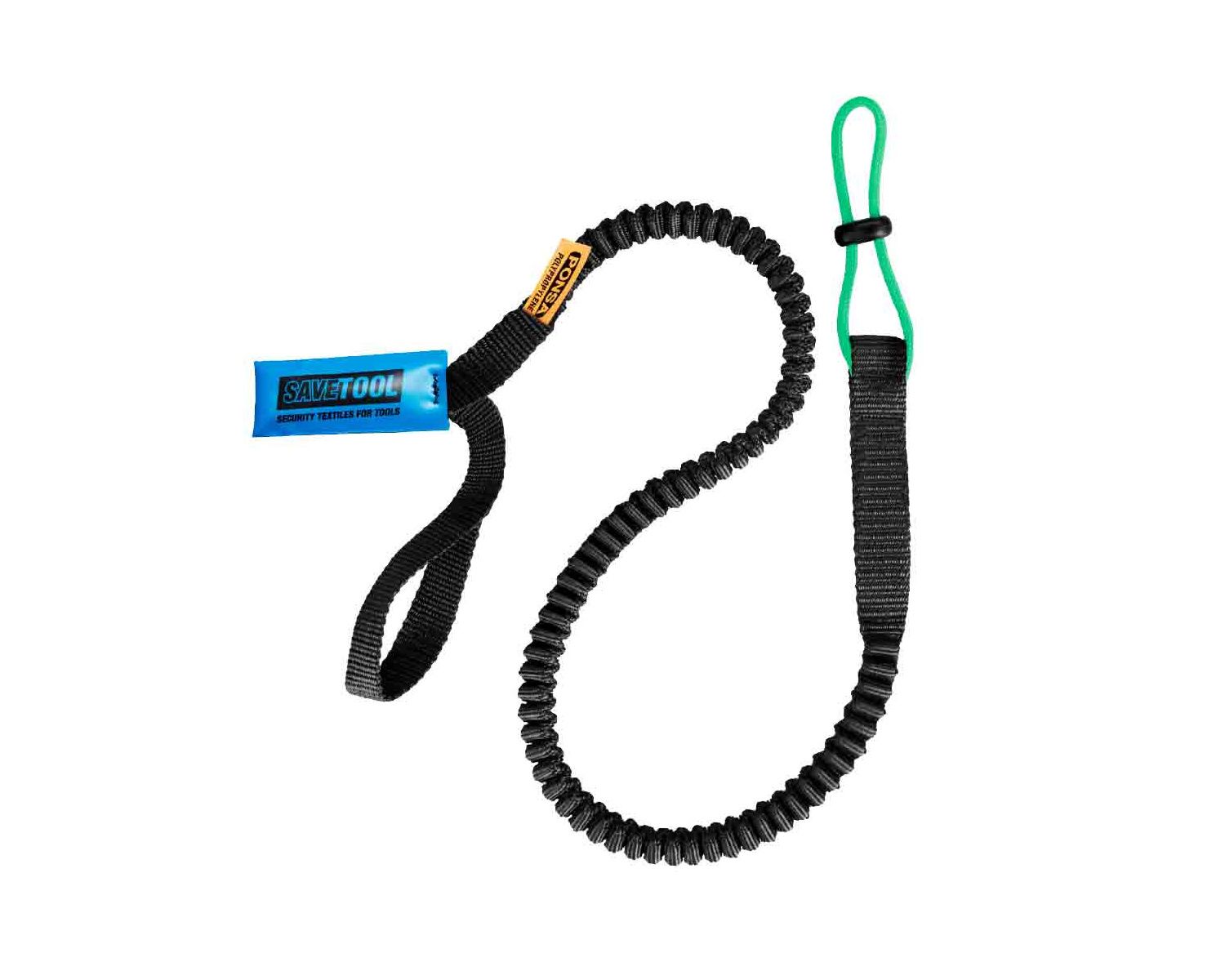 Kit composé d'une sangle élastique à haute résistance à la rupture avec un abosrbeur d'énergie méticuleusement conçu pour absorber la force de l’impact, dans les situations où les outils sont délogés, garantissant une protection optimale de l’opérateur.