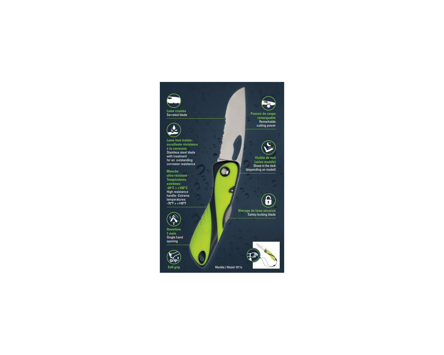 Chaque couteau Offshore est équipé d’une dragonne ajustable qui évite de perdre son couteau lors de son utilisation.