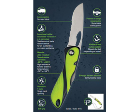 Le Couteau marin affuté en toutes circonstances, conçu pour la pratique de la voile et les marins exigeants, le couteau « Offshore» offre des fonctions essentielles à bord d’un bateau : qualité de coupe, visibilité de nuit, blocage de lame, ouverture une main, résistance à la corrosion, résistance mécanique... Sa lame crantée permet de couper efficacement tous types de cordages modernes comme le Dyneema. Cette version démanilleur – épissoir est aussi l’outil indispensable à bord d’un voilier.