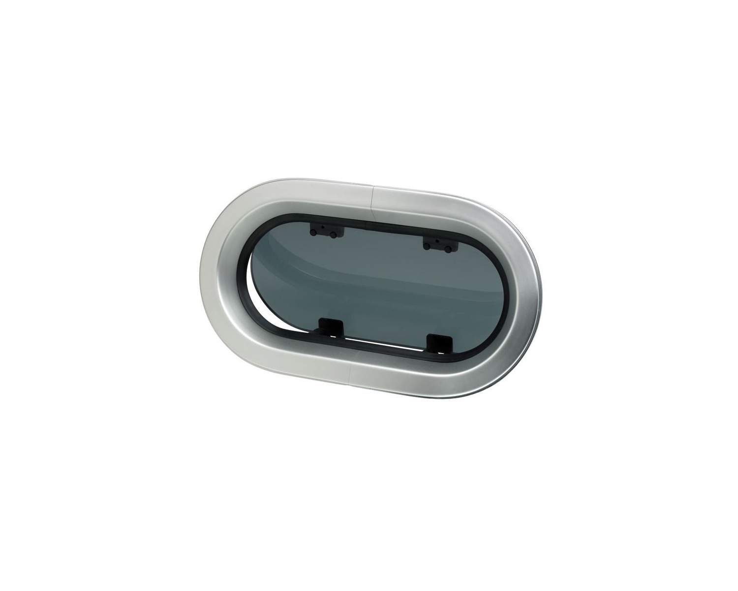 Cadre en aluminium anodisé et poli à la main. Panneau en acrylique "fumée" de 10mm d'épaisseur.