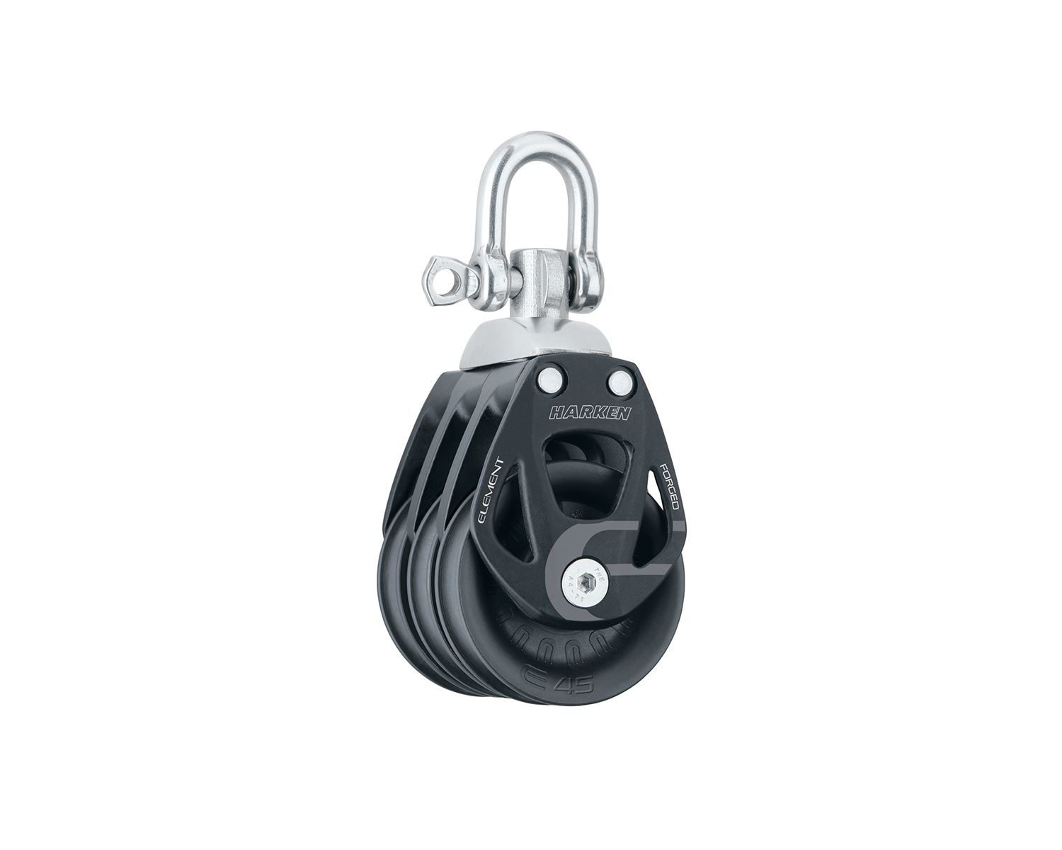 La poulie Element accepte les cordages de 8 à 16 mm de diamètre. Elle se décline en versions simples, doubles, triples, violons et plat pont, en 45, 60 et 80 mm.