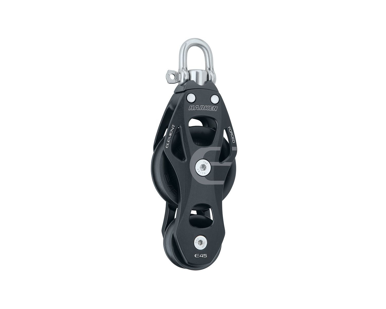La poulie Element accepte les cordages de 8 à 16 mm de diamètre. Elle se décline en versions simples, doubles, triples, violons et plat pont, en 45, 60 et 80 mm.