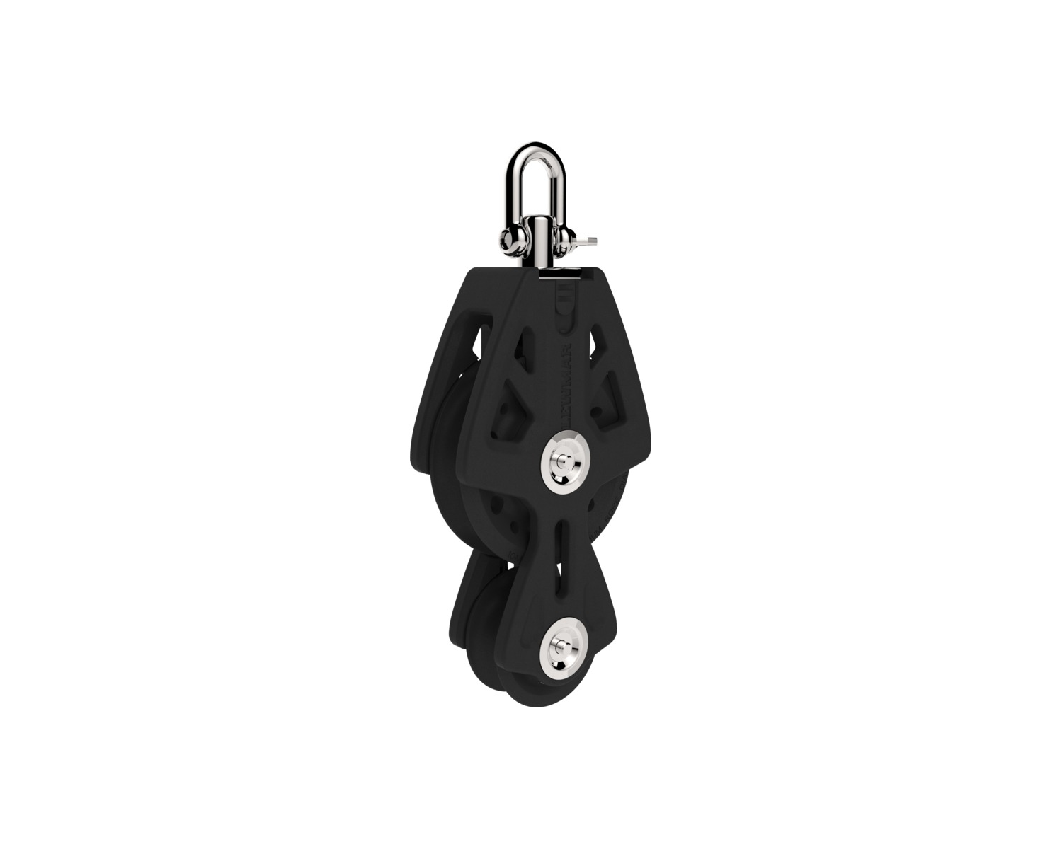 En position bloquée, la poulie a une tolérance de 30° de rotation sur son axe pour assurer le bon alignement avec le cordage.