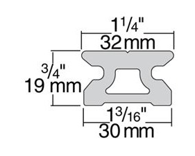Rail extrudé en aluminium 6061-T6 de première qualité anodisé hardcoat pour la réalisation d’une surface dure à haute résistance. Tous les rails Big Boat sont prépercés de trous de fixation alternant avec des trous prévus pour le blocage des butées à piston.