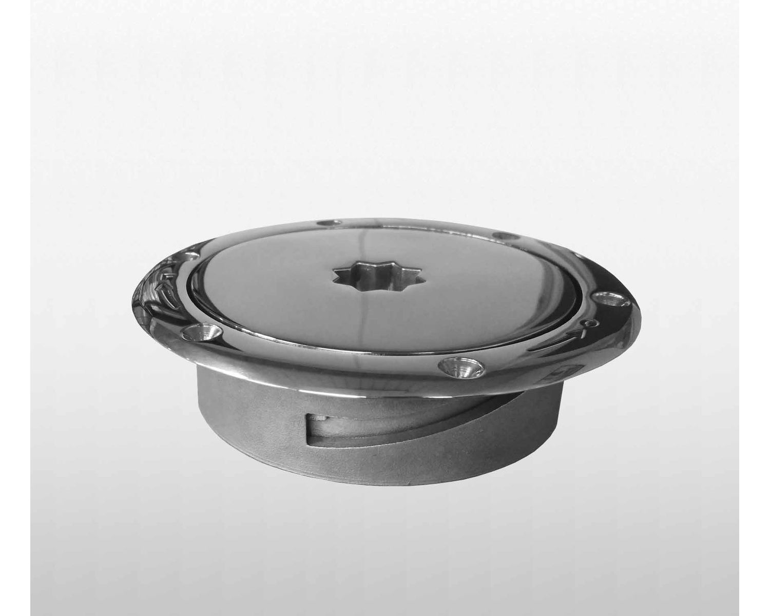 Le nable pour barre franche de secours en inox, finition poli miroir, est pourvu d'un bouchon à ouverture 1/8 de tour.