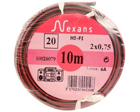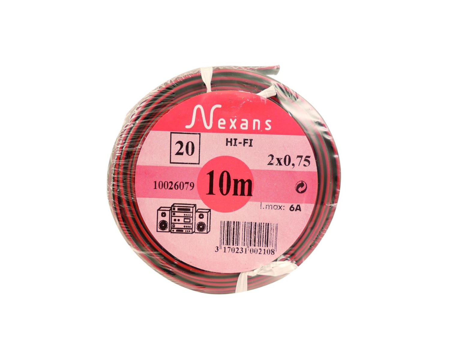 Câble électrique hifi noir et rouge 2 x 0,75 mm2 bobine de 10m