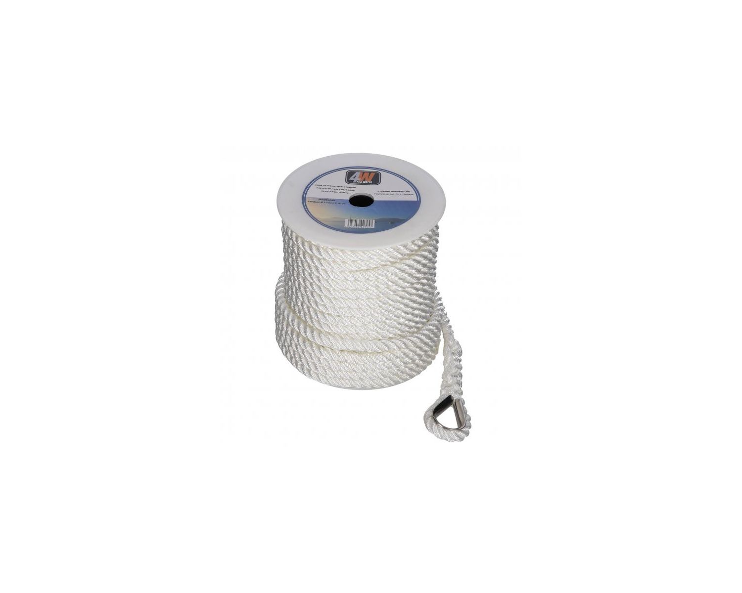 Bosse de mouillage blanc tressé en polyester avec cosse en métal.
