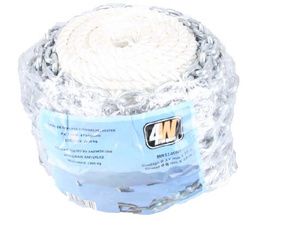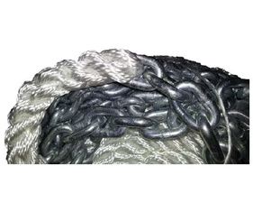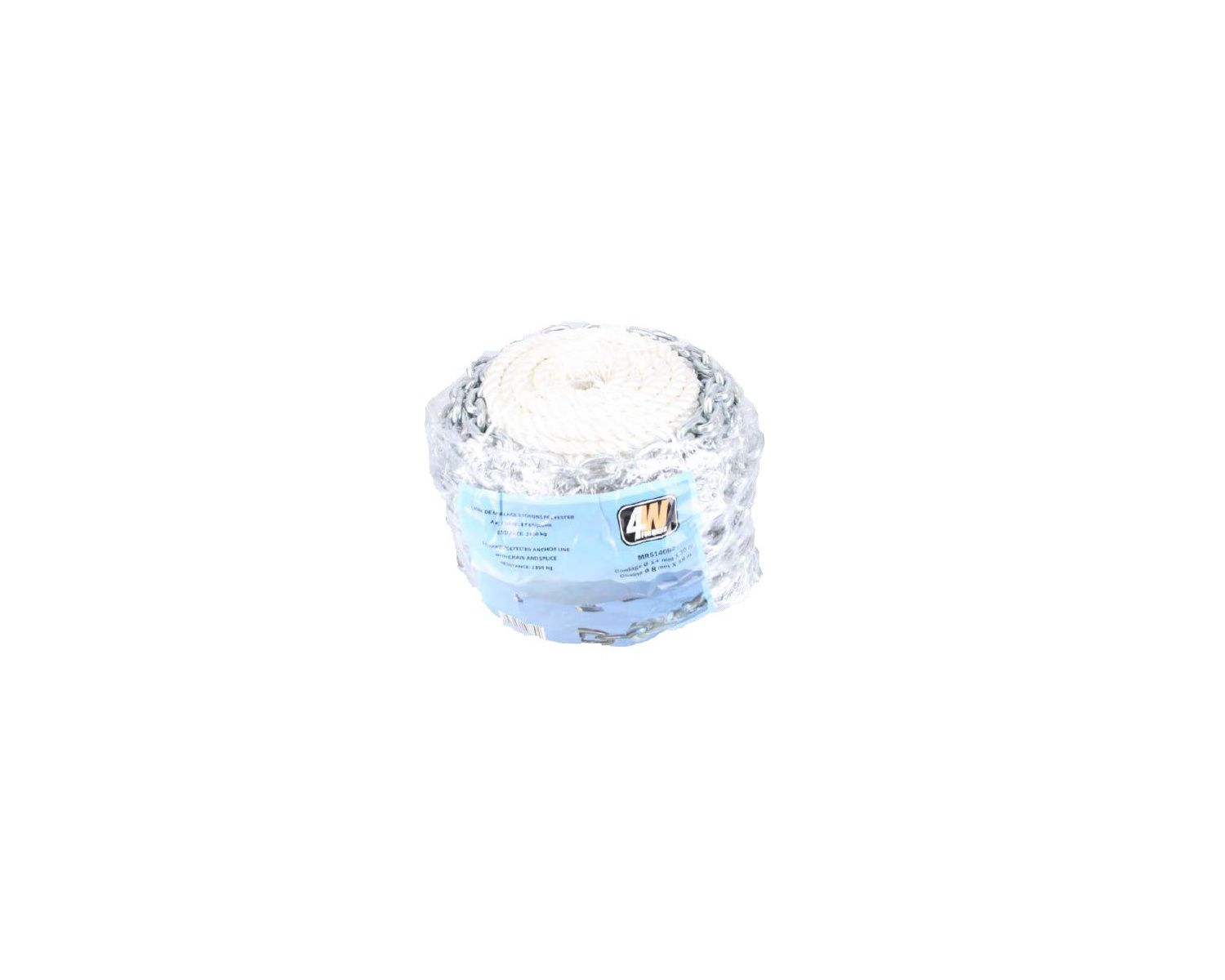 Cordage polyester 3 torons et chaîne acier galvanisé ISO. Epissure longueur 15cm entre le cordage et la chaîne.