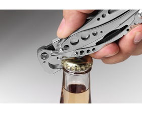 Pour un transport plus facile, le Skeletool est équipé d'un mousqueton, qui fait aussi office de décapsuleur, et d'un clip poche amovible.