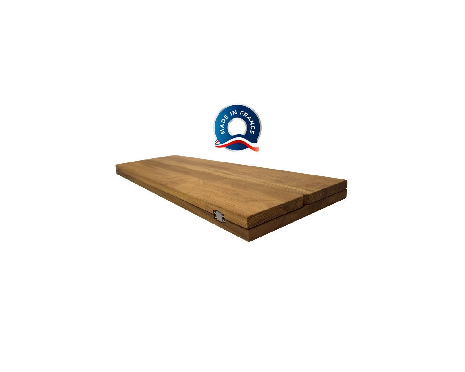 Plateau de table pliant 70x30/60x2cm en teck de Birmanie massif | Charnières inox