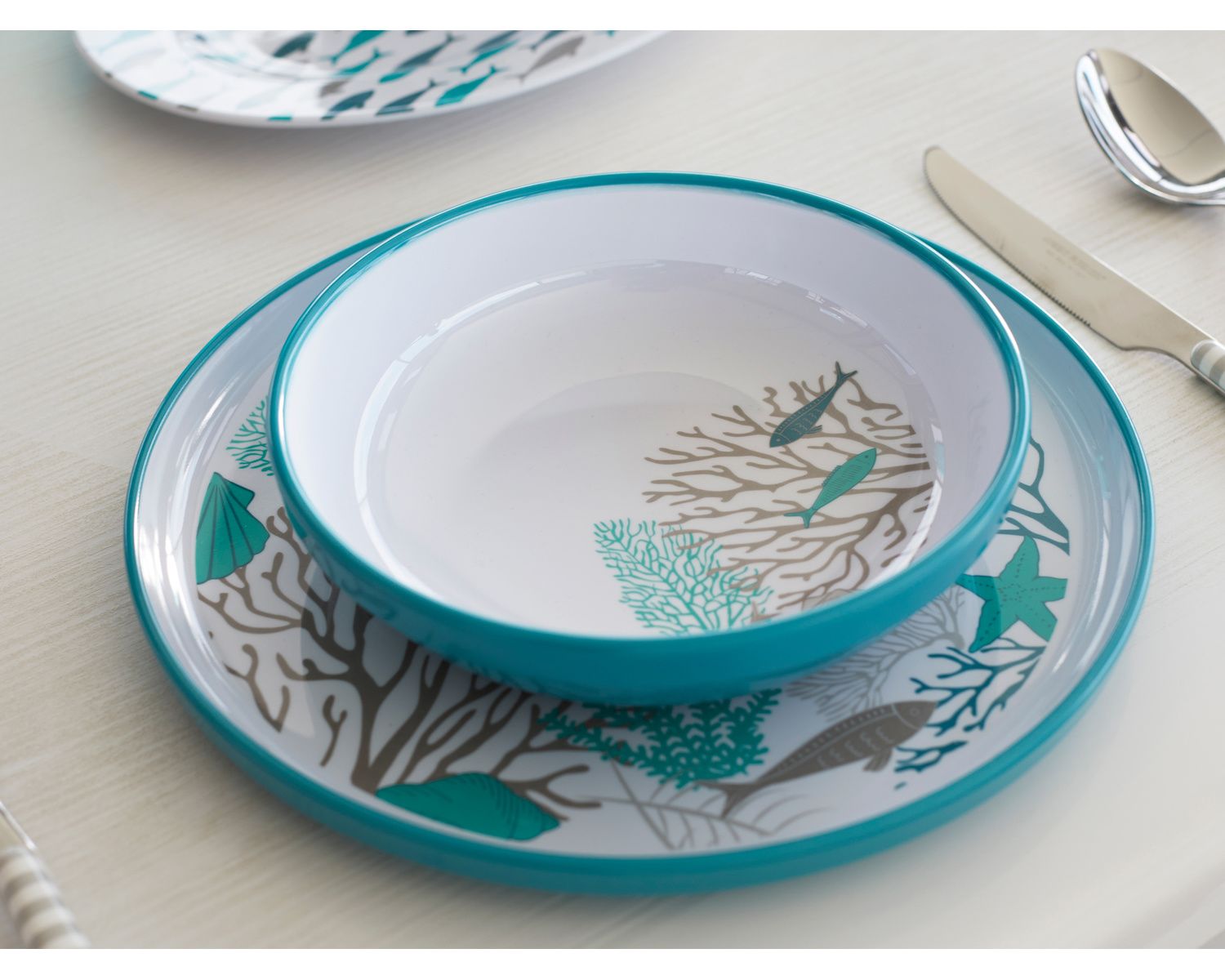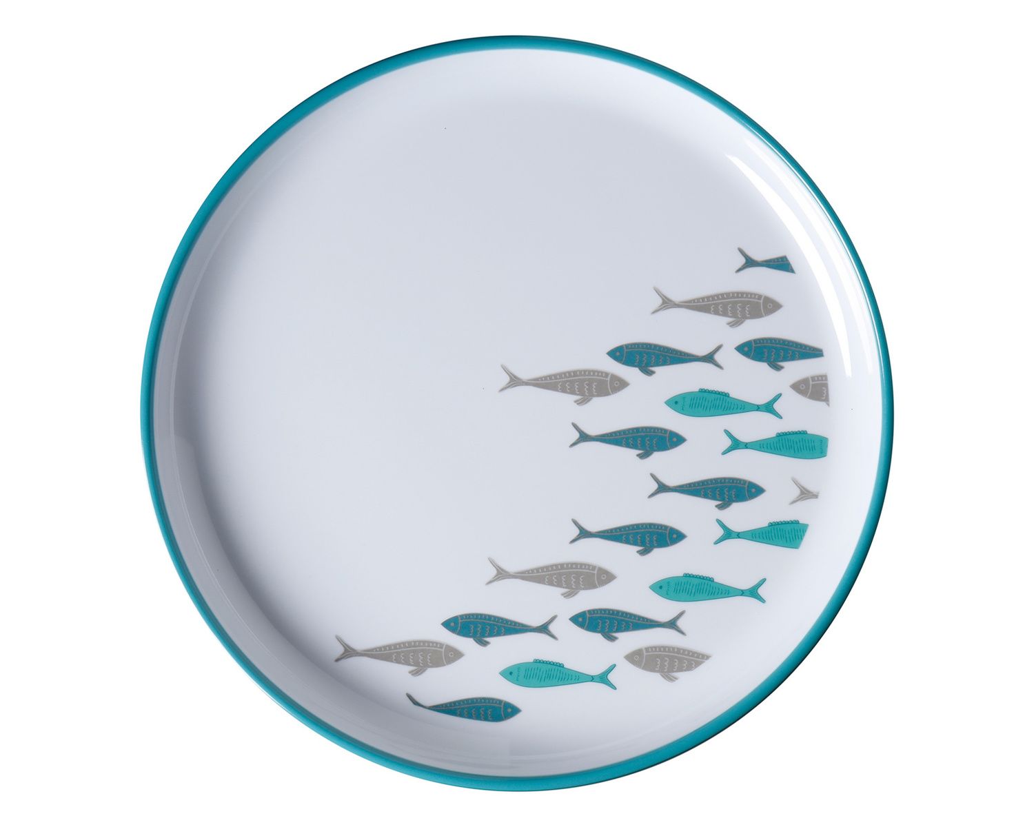 Assiette en mélamine avec anneau antidérapant sur sa base, parfaite pour la navigation