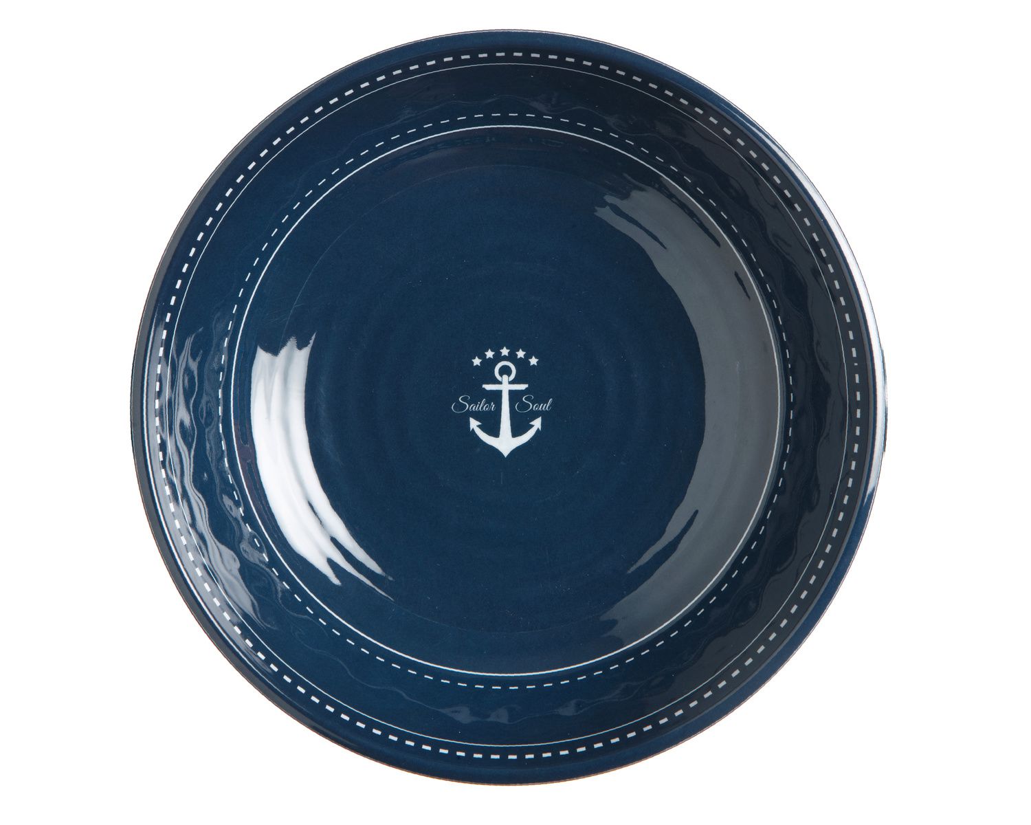 Le bol en mélamine est utile pour les soupes, les pâtes ou les céréales et fait partie de la vaisselle en mélamine incassable Sailor Soul de sets d’assiettes, mugs, saladier, tout fabriqué en mélamine, décorée avec un style nautique très élegant.