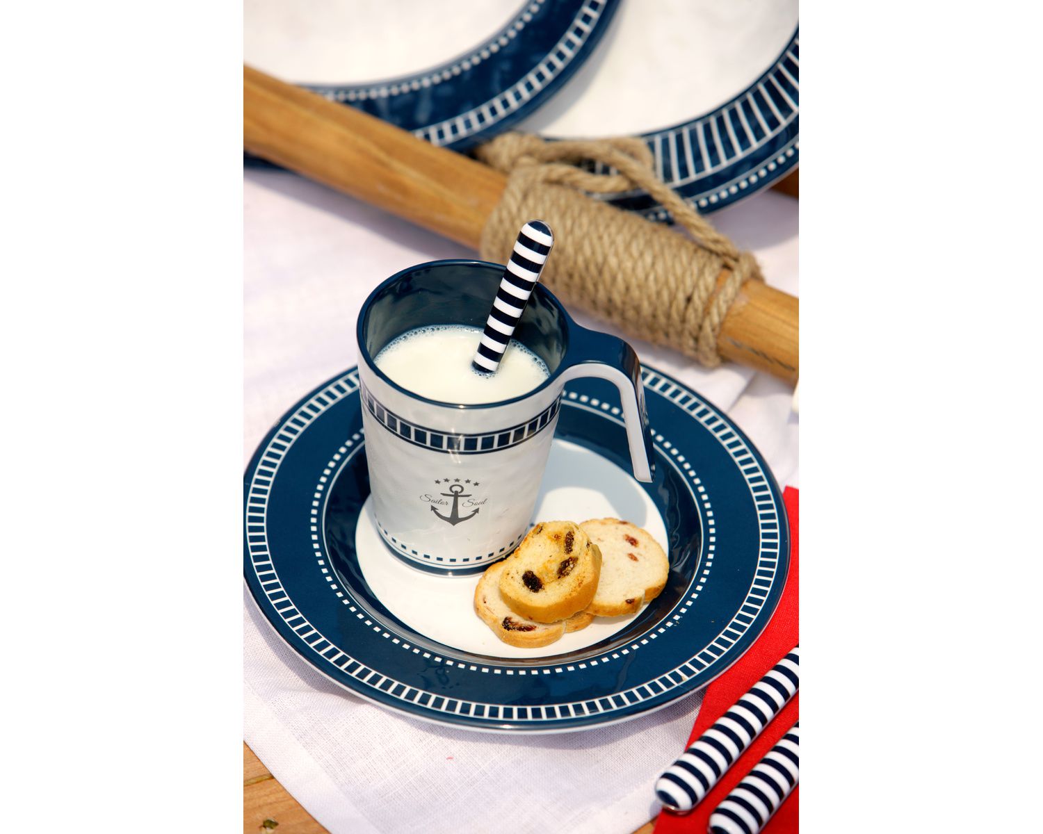 L'assiette à dessert en mélamine fait partie de la vaisselle en mélamine incassable Sailor Soul de sets d’assiettes, mugs, saladier, tout fabriqué en mélamine, décorée avec un style nautique très élegant.