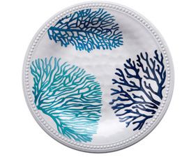 L’assiette en mélamine avec décoration de coraux est une vaisselle idéale pour le bateau. Ø27 ( lot de 6)