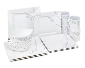 Ligne de vaisselle PACIFIC, boite de 16 pièces ''CARRE''. Conçue en mélamine, cette ligne de vaisselle associe solidité et design.