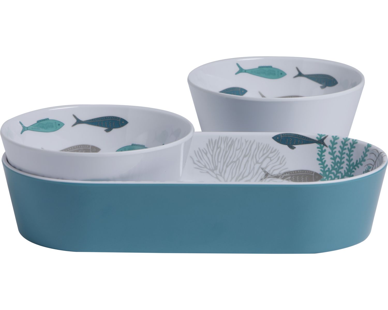 Set apéritif en mélamine avec conception de corail et poisson