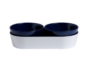 Set apéritif bleu en mélamine avec 2 bols et un plateau, composé à 100% de mélamine.