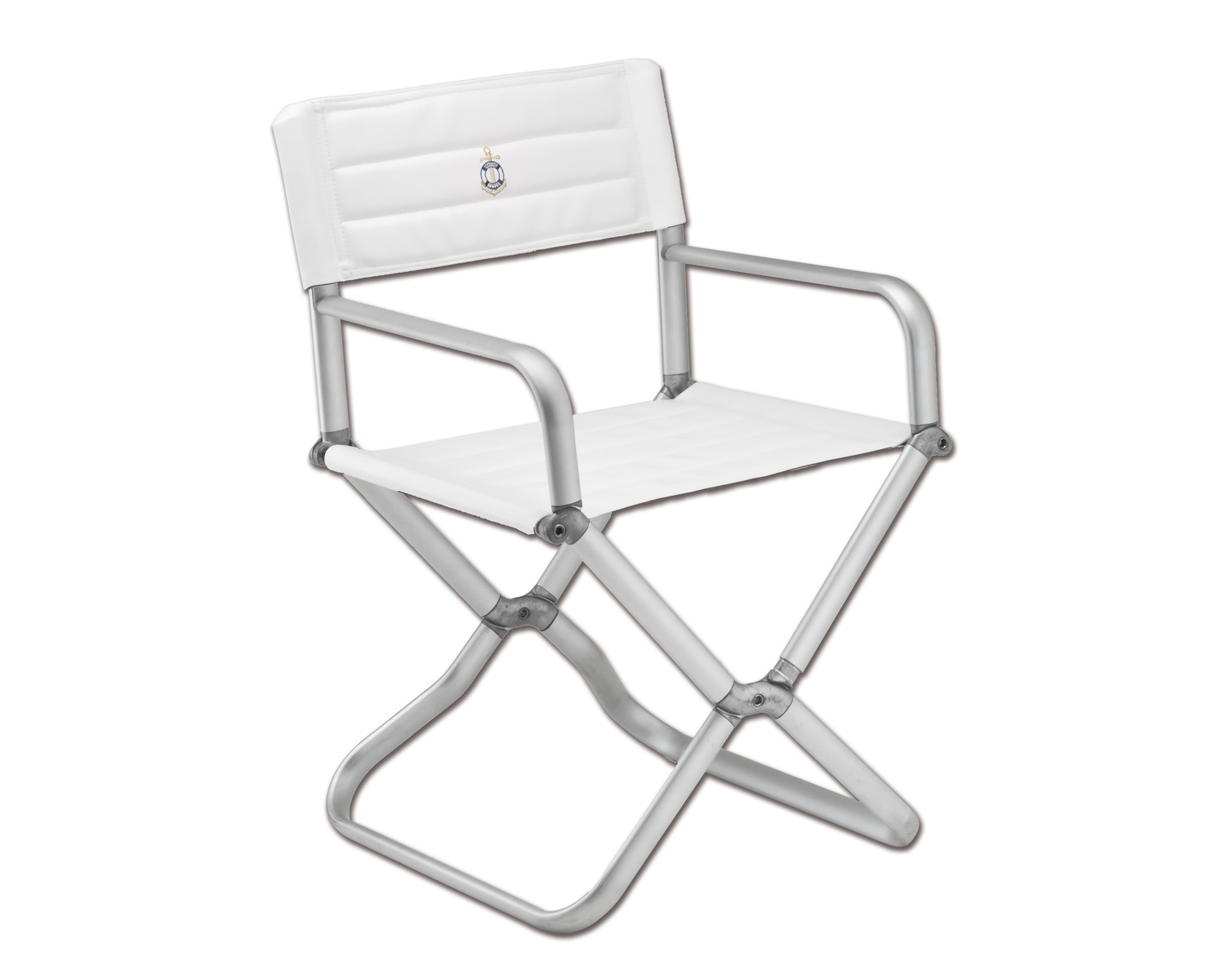 Finition aluminium anodisé avec assise et dossier en simili cuir.