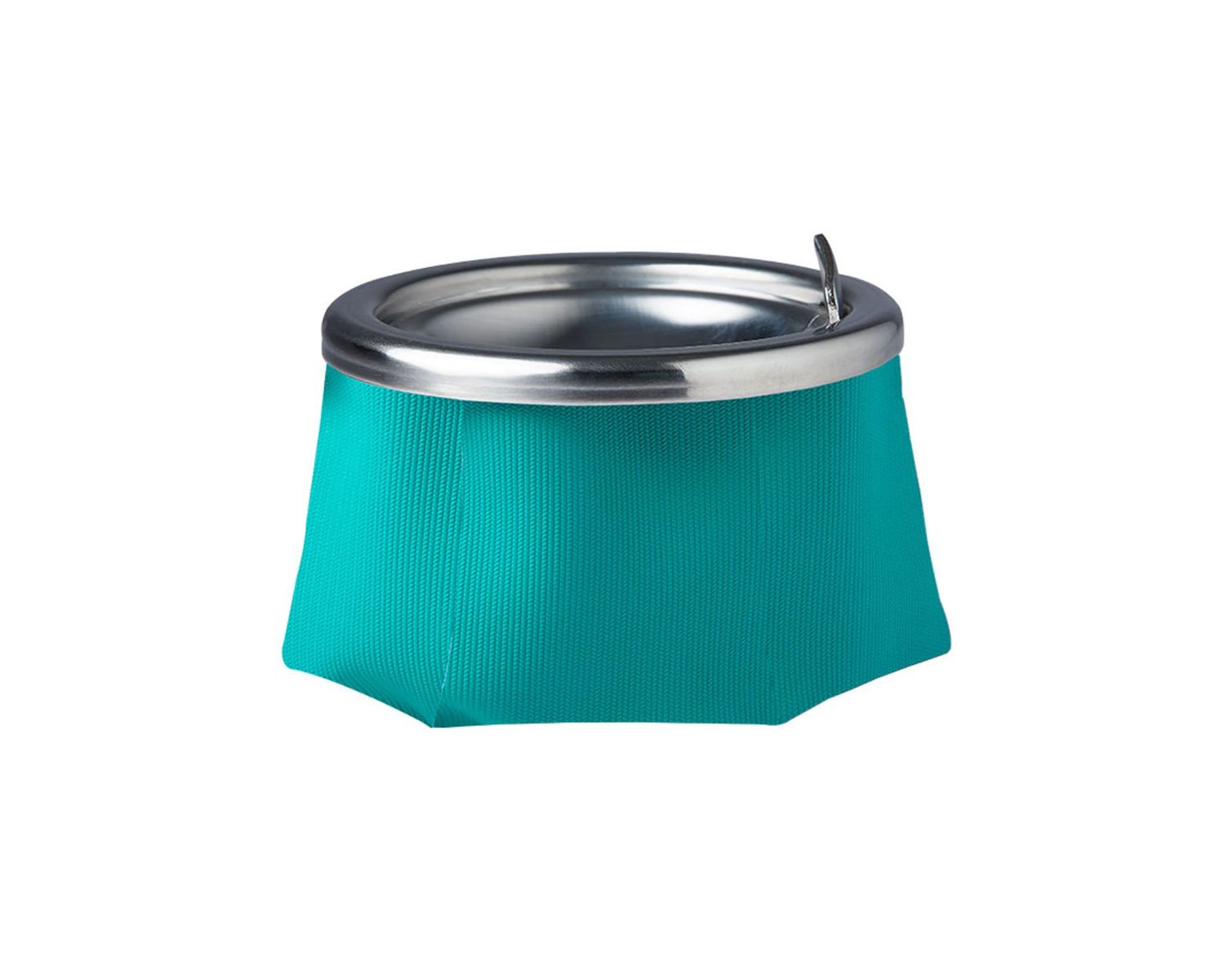 Un cendrier élégant, pratique, antidérapant en similicuir bleu turquoise.