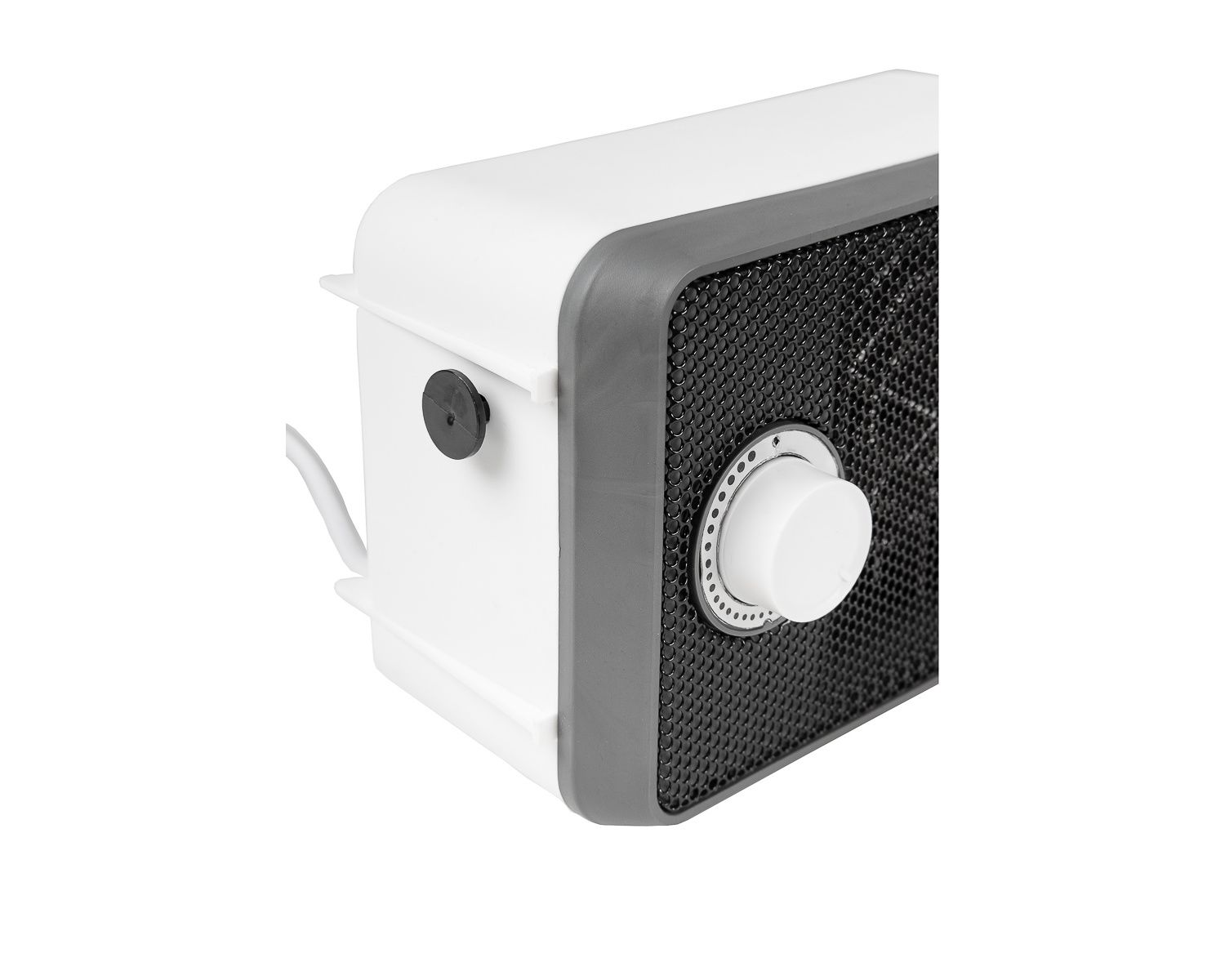 Petit chauffage électrique léger avec une puissance de 600 watts. Peut être utilisé debout et placé n’importe où grâce à sa taille compacte et idéale pour les petits espaces.
