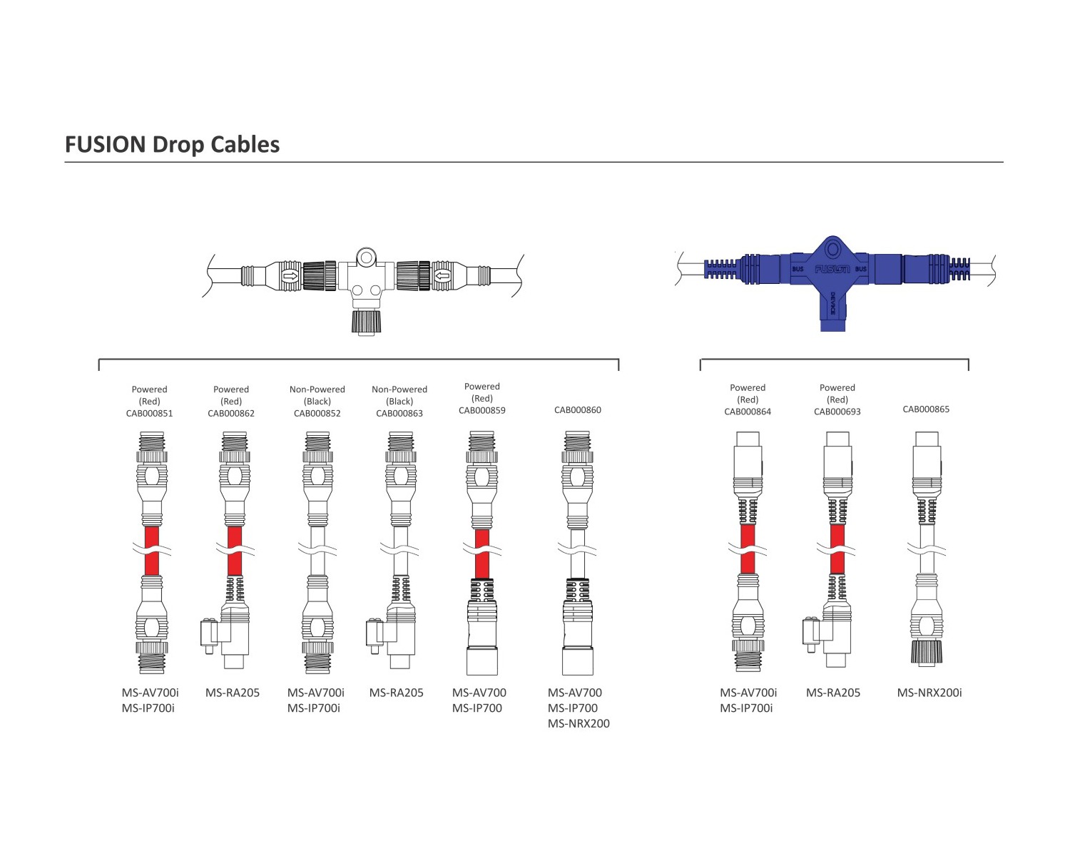 Tous les câbles nécessaire au câblage de votre stéréo marine FUSION compatible sur un réseau NMEA2000, existant, ou non.