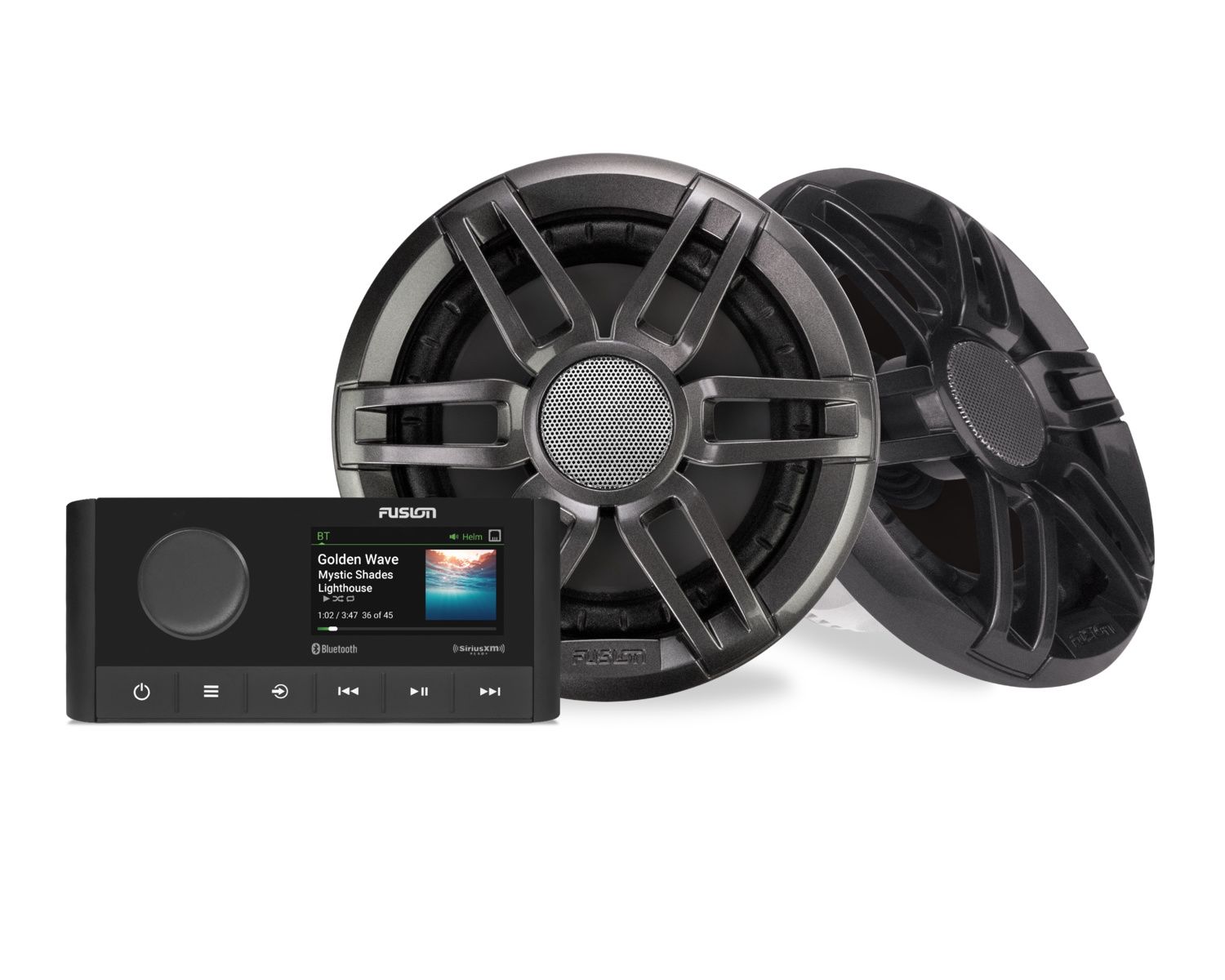 Équipez votre bateau d'un système audio de qualité à un prix exceptionnel. Une chaîne stéréo MS-RA210 et deux haut-parleurs XS vous permettent de choisir la musique idéale facilement.