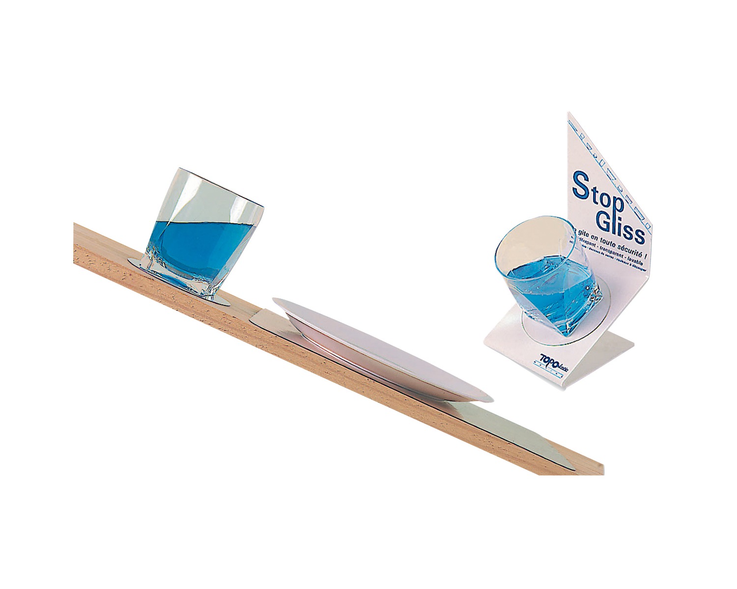 Glisstop est un filet enrobé de PVC qui prévient le glissement des objets sur une étagère, une table, dans un equipet. Glisstop se découpe facilement aux ciseaux, ne s'éffiloche pas, se lave à la main ou en machine à 60°. Il s'utilise sur la plupart des surfaces lisses à l'excéption des surfaces vernies qui pourraient être endommagées. Glisstop est disponible en rouleaux blancs et bleus assortis.
