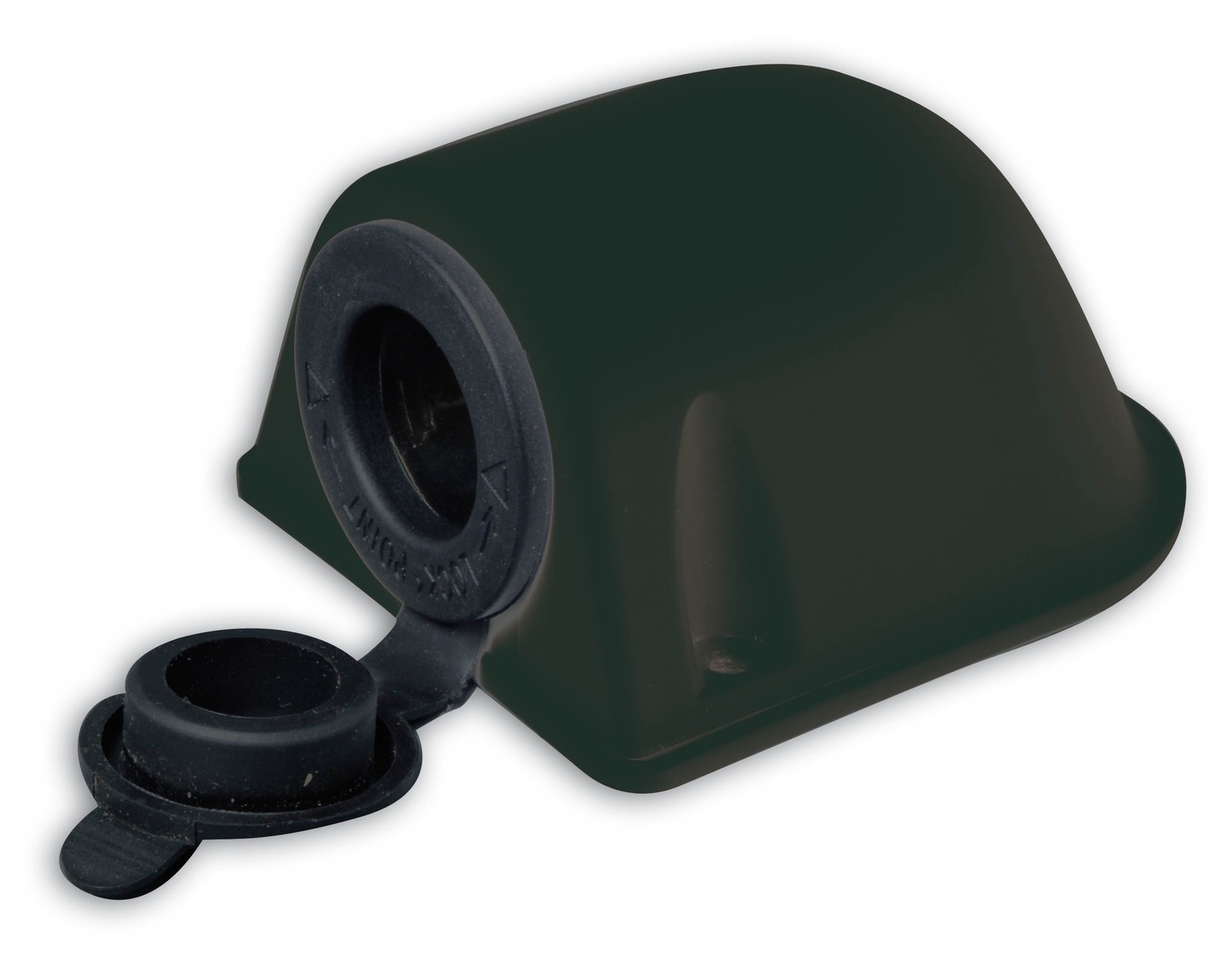 Prise de pont allume-cigare entièrement étanche, aussi bien lorsque le capuchon de protection est refermé que lorsque la fiche est branchée, car elle est équipée d'un collier étanche spécial et d'un système « lock-in » qui permet de bloquer la fiche en la faisant pivoter.