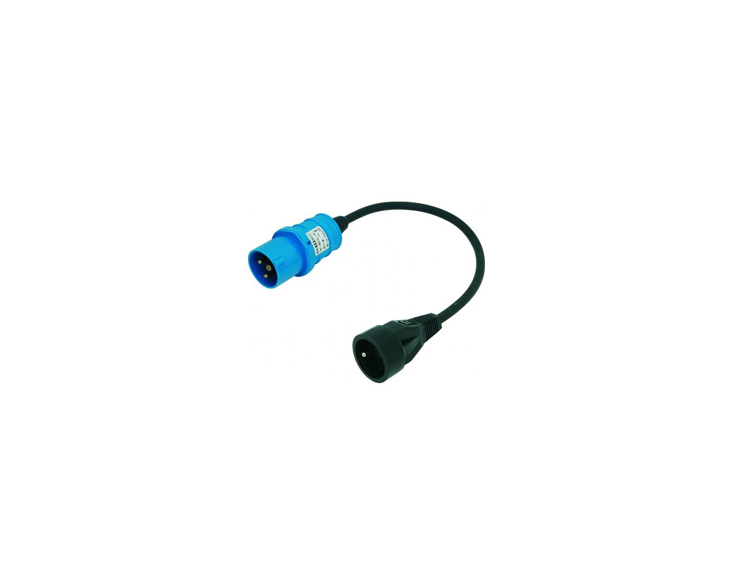 Adaptateur : Fiche male P17 IP44 + câble 3x1.5 mm² + fiche femelle 16A caoutchouc.