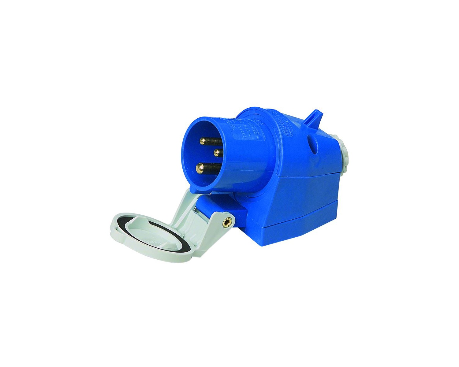Prise mâle spécial marine. Fixation sur socle incliné avec clapet étanche