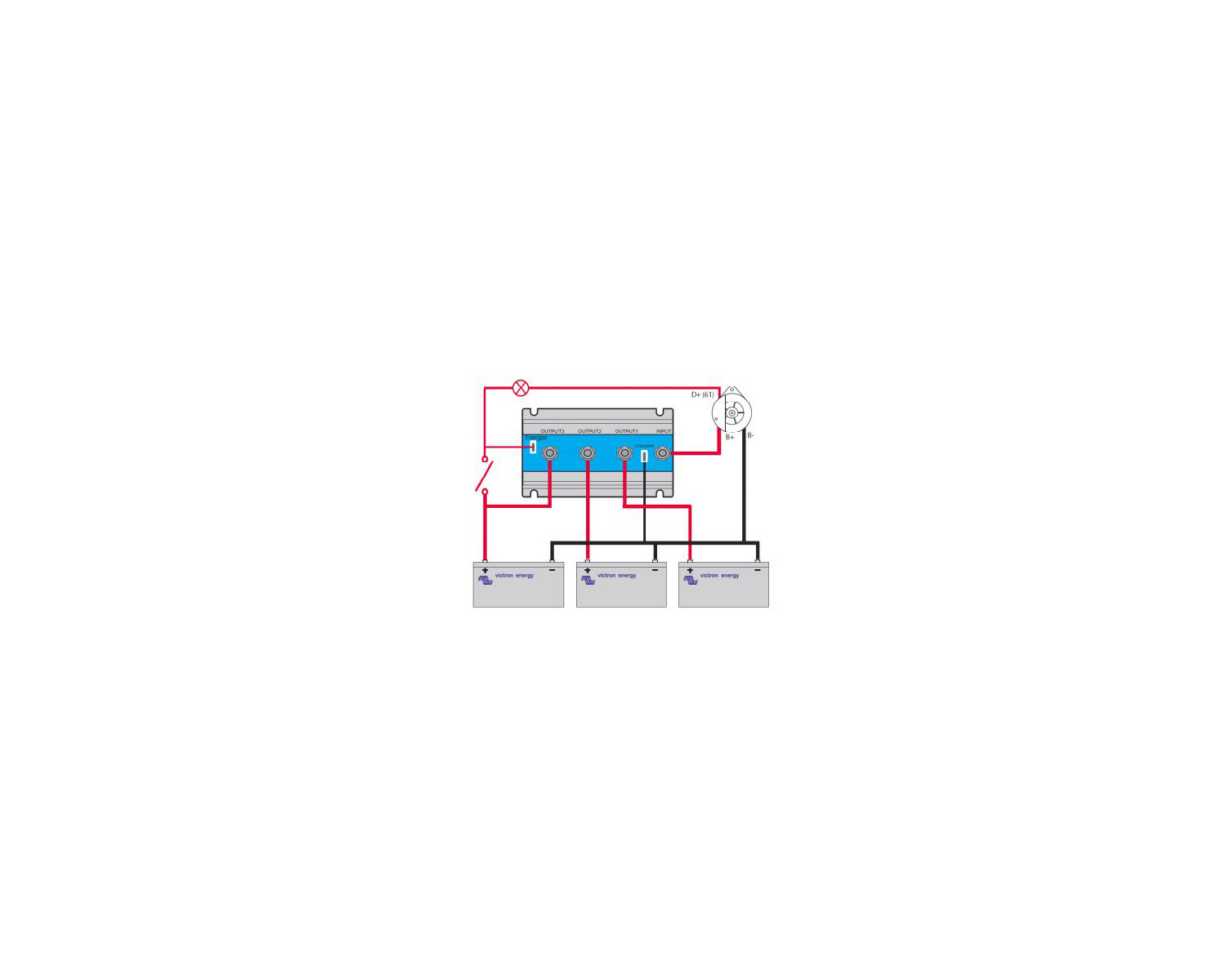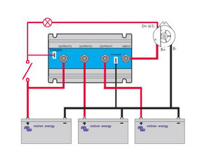 Certains alternateurs requièrent une tension de CC sur la sortie de la borne B+ pour commencer à charger. Évidemment, il y aura du CC quand l’alternateur sera connecté directement à la batterie. Cependant, le fait d’insérer un répartiteur FET ou à Diode empêchera tout retour de tension/courant des batteries à la borne B+, et l’alternateur ne démarrera pas.